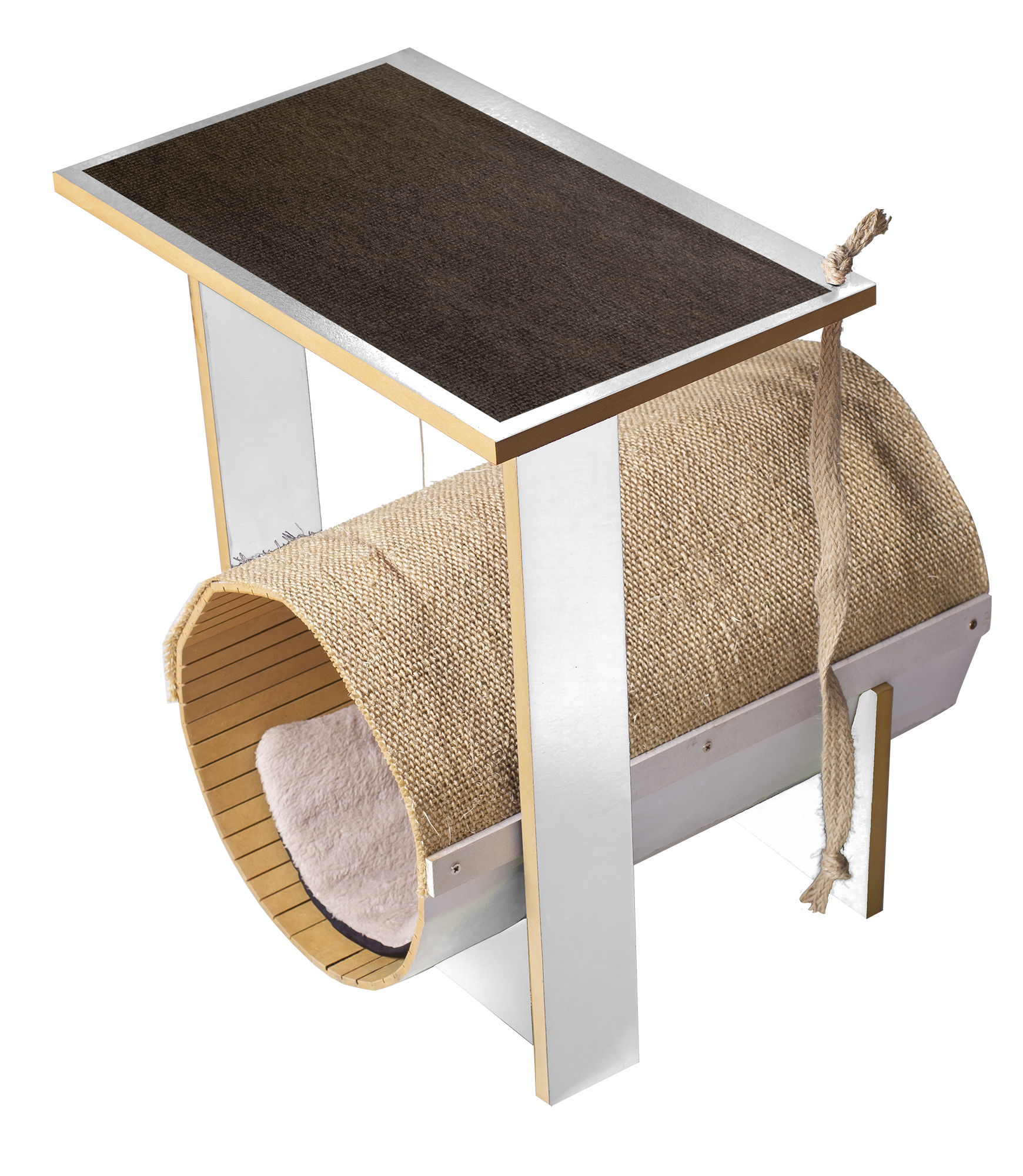 Oferece inúmeras opções de brincadeira e diversão. Sua toca/túnel - devidamente coberta por um colchão forrado em fleece - garante a alegria do lado de dentro e do lado de fora, onde a enorme área coberta com tela de sisal é a garantia de muitas arranhadas.