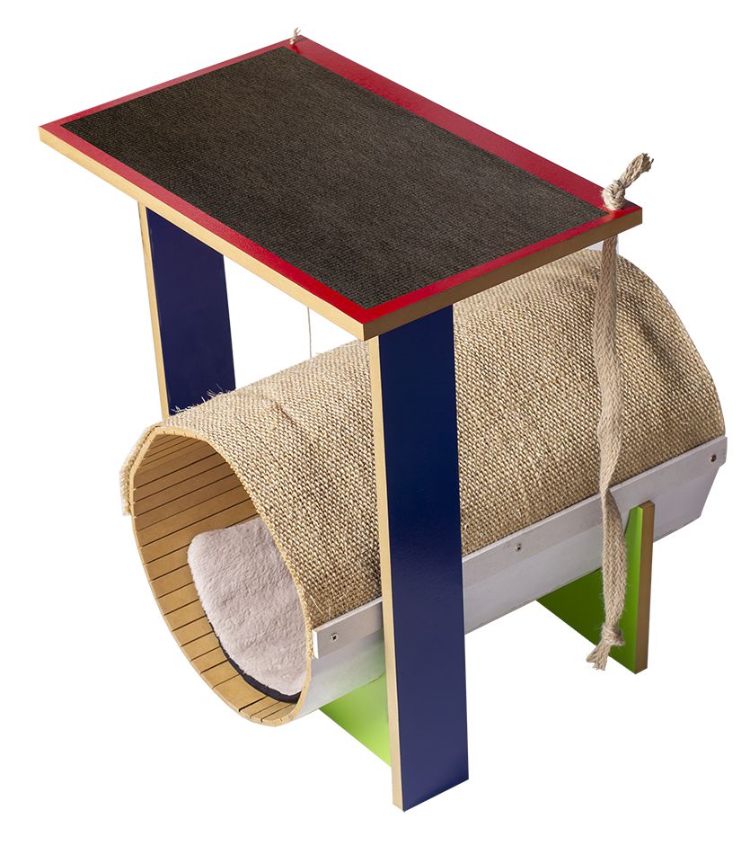 Oferece inúmeras opções de brincadeira e diversão. Sua toca/túnel - devidamente coberta por um colchão forrado em fleece - garante a alegria do lado de dentro e do lado de fora, onde a enorme área coberta com tela de sisal é a garantia de muitas arranhadas.
